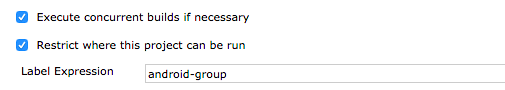By checking both ‘Execute concurrent builds if necessary’ and ‘Restrict where this project can be run’, we allow the job to be executed concurrently, subject to node availability, using only nodes tagged with ‘android-group’. The restriction is to ensure that only nodes with connected devices are used for automation, as we may have other nodes with no connected devices used for other purposes.